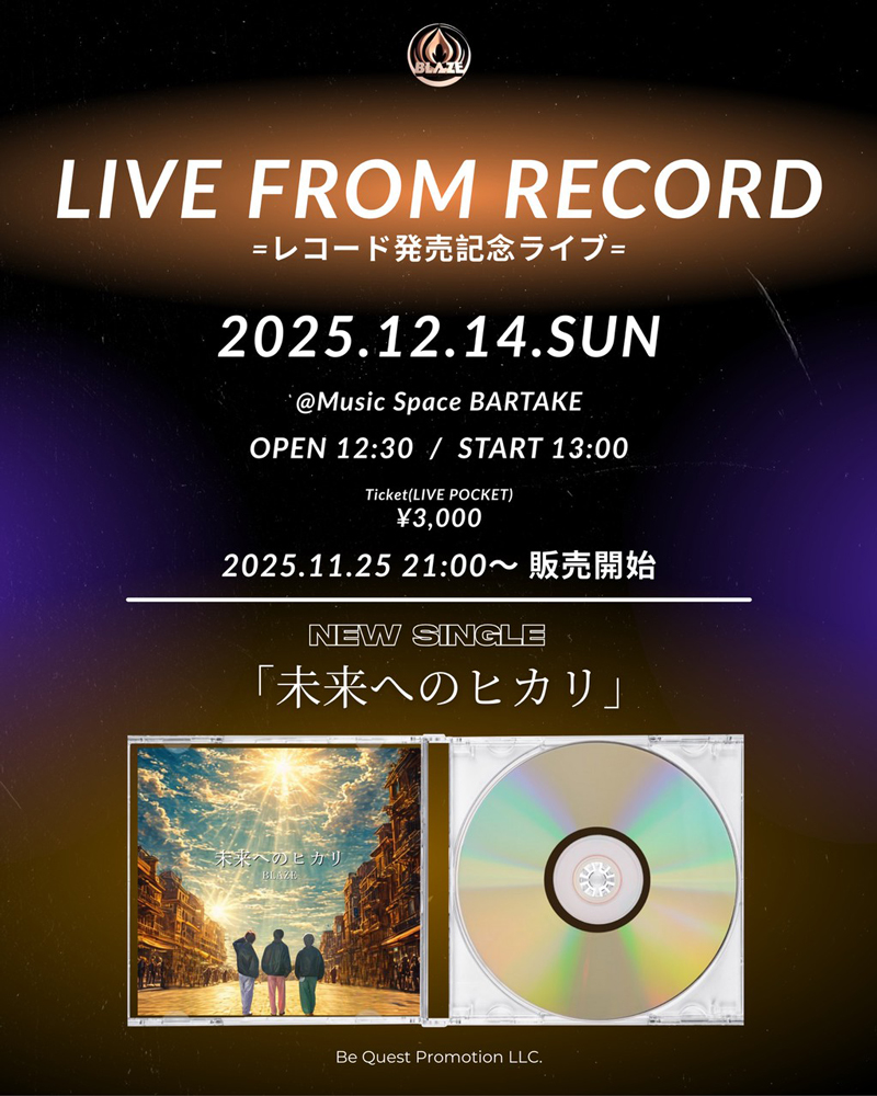 [時間] open 17:00 / start 17:30 [観覧料金] 一般¥2000(+1drink別¥500) / 高校生以下¥1000(+1drink別¥500) ※早割:公演1週間前までのWEB予約を対象に、アーカイブ視聴券付き [配信料金] リアルタイム視聴無料(YouTubeLive) [観覧予約・応援チケット] https://x.gd/bartake251207 [配信] YouTubeLive https://www.youtube.com/@MusicSpaceBARTAKE |