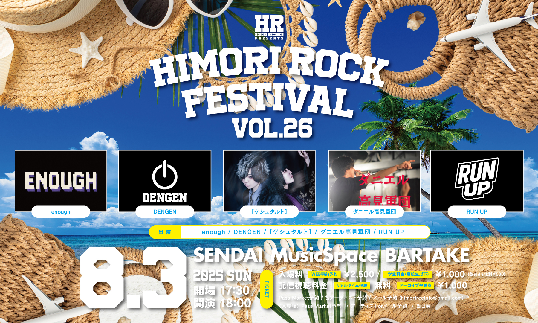 夜公演/【Himori Rock Festival vol.26】[出演] ■DENGEN ■ENOUGH ■【ゲシュタルト】 ■ダニエル高見軍団 ■RUN UP |