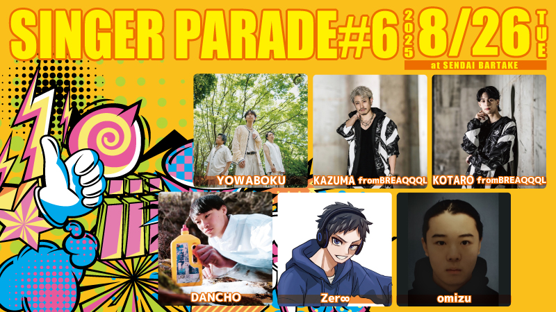 [時間] open 18:30 / start [1部]19:00 / [2部]20:30 [観覧料金] 予約¥4000(+1drink別¥500) / 当日¥4500(+1drink別¥500) [配信料金] ツイキャスプレミア¥2500(アーカイブ期間2週間) [観覧予約・応援チケット] https://x.gd/dream250810 [配信] ツイキャスプレミア https://twitcasting.tv/sendaibartake/shopcart/375050 |