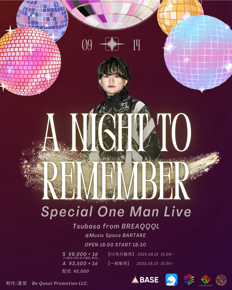 [時間] open 18:00 / start 18:30 [観覧料金] S席¥8000(+1drink別¥500)※FC限定10席・前方確約・配信付 / A席¥3500(+1drink別¥500) [配信料金] ¥2000(ツイキャスプレミア) [問い合わせ] 公式LINE https://liff.line.me/1645278921-kWRPP32q/?accountId=009hnrgq |