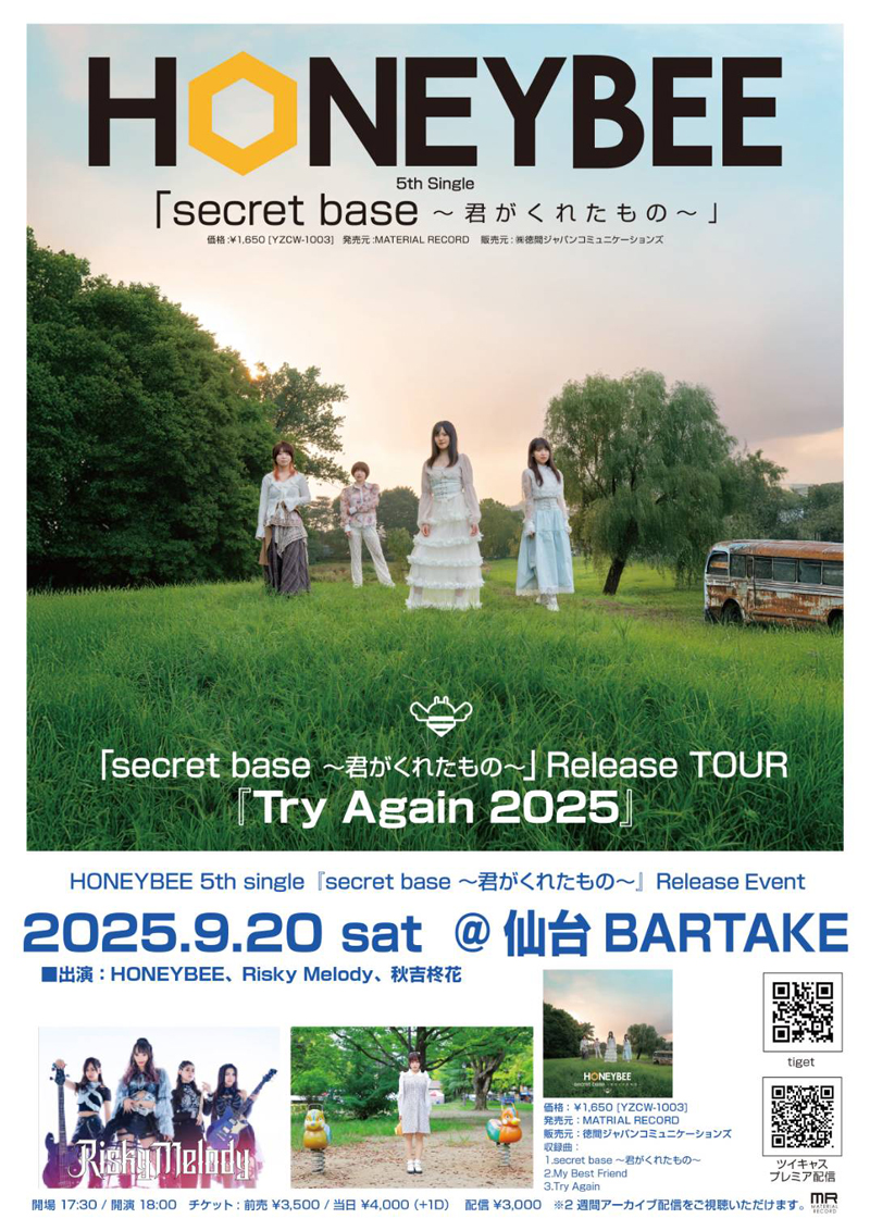 [時間] open 11:15 / start 11:45 [観覧料金] 前売¥3500(+1drink別¥500) [配信料金] ¥3000(ツイキャスプレミア) [観覧予約・応援チケット] https://x.gd/bartake250914 [配信] ツイキャスプレミア https://premier.twitcasting.tv/sendaibartake/shopcart/390123 |