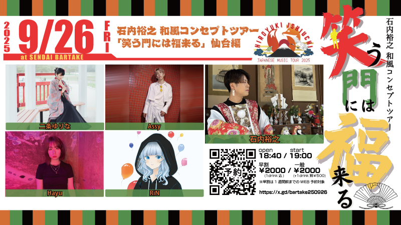 【石内裕之 和風コンセプトツアー 「笑う門には福来る」仙台編】[出演] ■石内裕之 ■二条ゆりな ■Assy ■Hayu ■RiN |