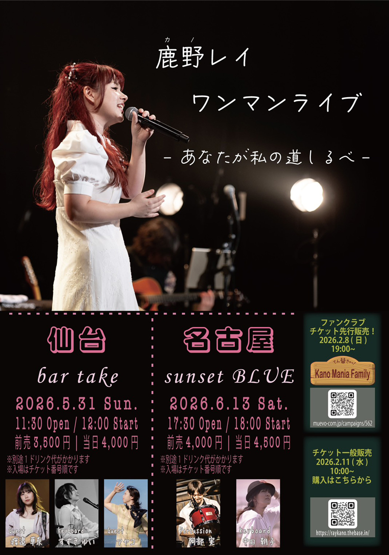 [時間] open 16:00 / start 16:30 [観覧料金] WEB事前予約(早割)¥800(+1drink別¥500) / 一般¥1200(+1drink別¥500) ※早割は公演1週間前までのWEB予約が対象です。 [配信料金] リアルタイム視聴無料(YouTubeLive) [観覧予約・応援チケット] https://x.gd/bartake260510 [配信] YouTubeLive https://www.youtube.com/@MusicSpaceBARTAKE [アーカイブ] YouTube |